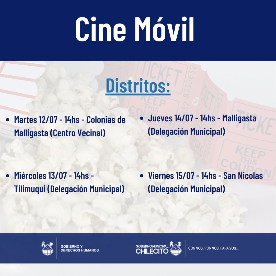 La Dirección General de Educación, perteneciente a la Secretaría de Gobierno y Derechos Humanos de la Municipalidad de Chilecito, invita a disfrutar del Cine Móvil en vacaciones!!!